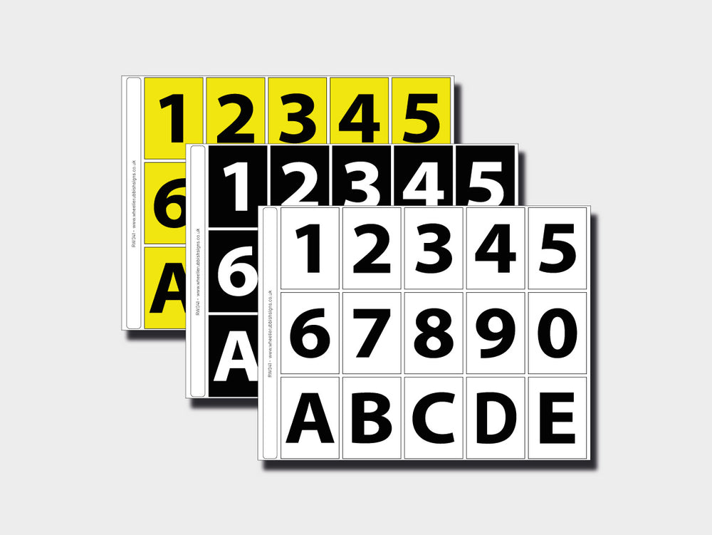 A4 Printed Sticker Set (0-9, A-E), Waterproof Self-Adhesive Vinyl Stickers (3 Colours Available)